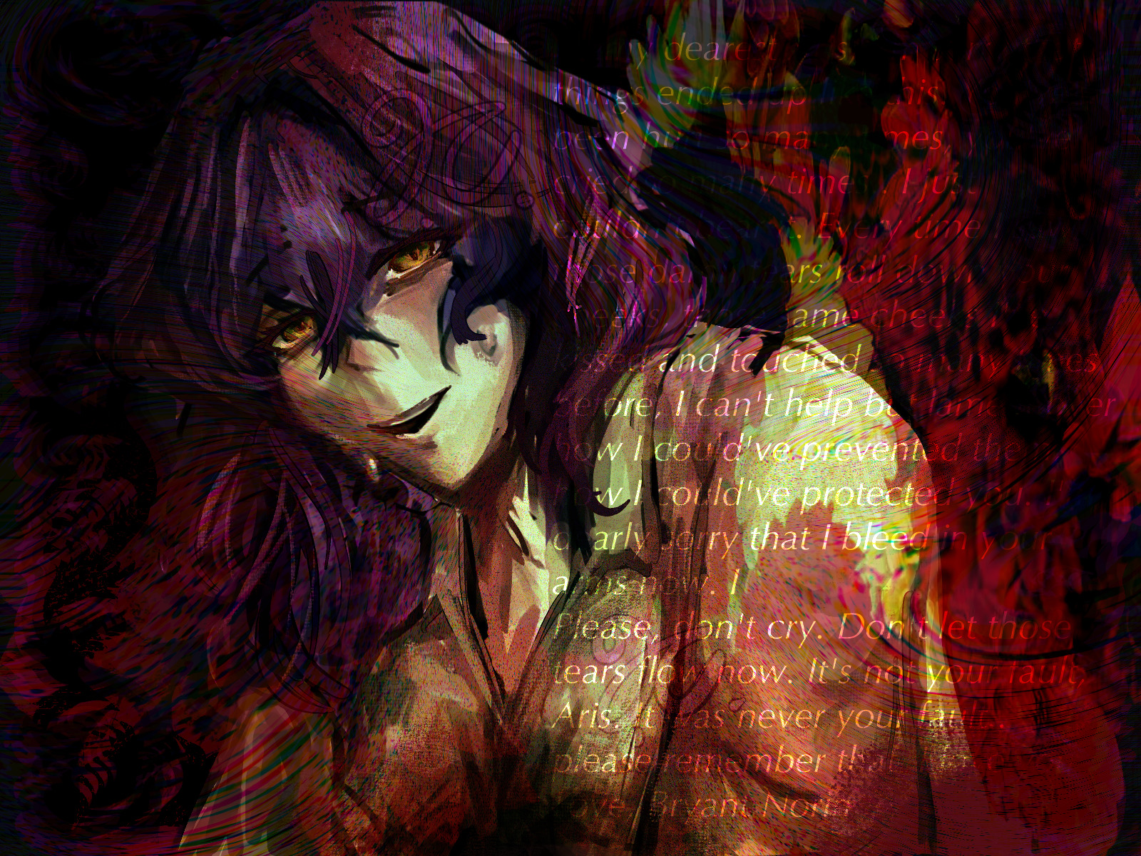 I feel like some damage on Aris' part would need to occur if improvement were to be seen on his part. He's just that kind of bad that really can't be helped without some kind of pain (I guess force too?), you know? It's saddening to think about, but I feel like if Aris were to be recovering from his harmful habits, he'd have one too many mental breakdowns,,